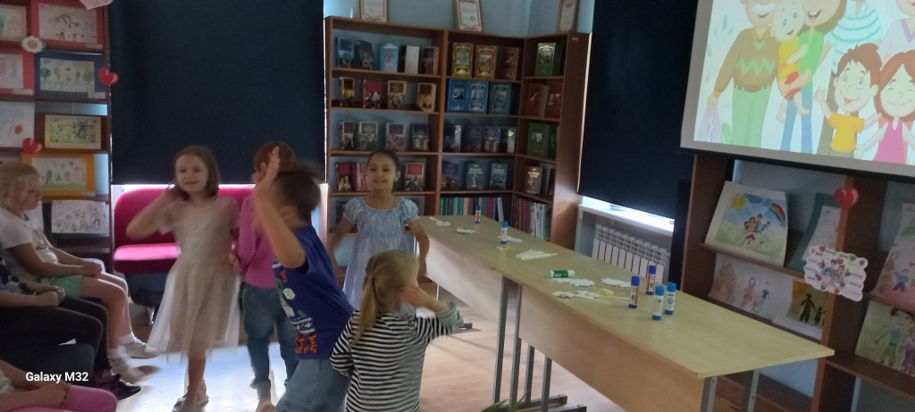 На мероприятии ребята узнали об истории праздника, приняли участие в викторине, танцевали и подпевали веселую песенку о семье, библиотекари провели мастер-класс по изготовлению ромашки, а в заключении дети посмотрели замечательный отрывок из мультфильма «Встречайте бабушку!».
