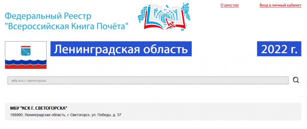 Ноябрь для нашего учреждения начался со знаменательного события! По итогам формирования десятого ежегодного издания Федеральный реестр «Всероссийская книга почета» 2022 года на основании рекомендаций администрации МО «Светогорское городское поселение» МБУ «КСК г. Светогорска» включено в реестр лучших организаций, предприятий и учреждений Российской Федерации.