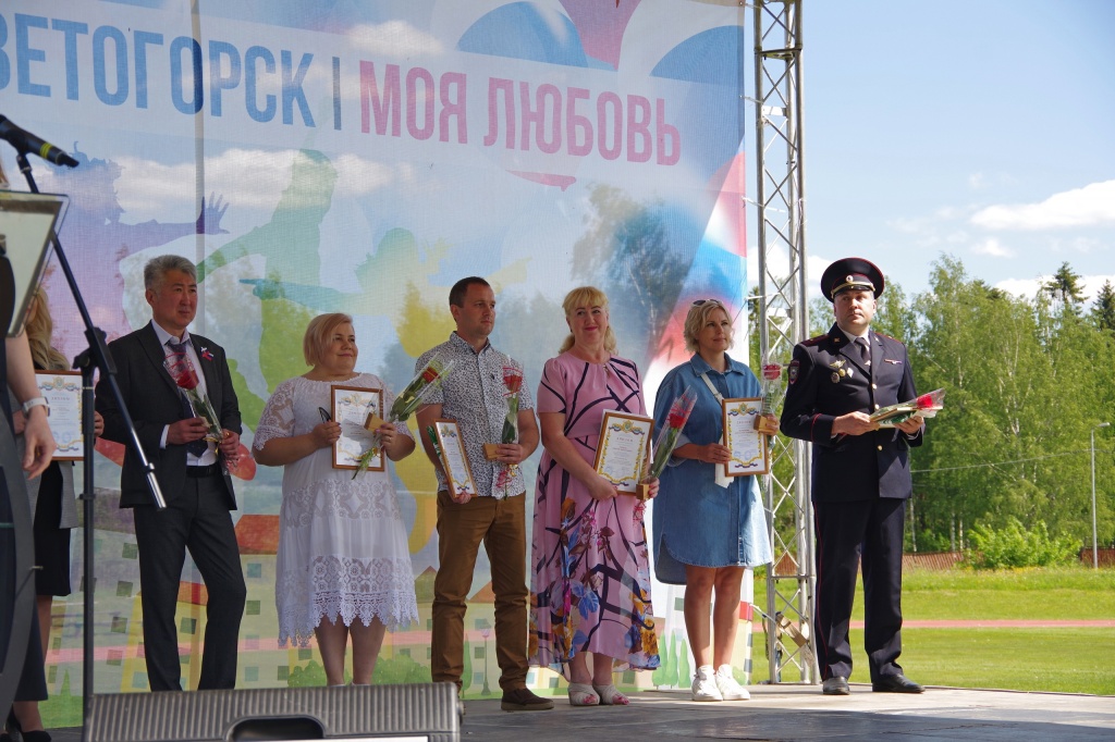 Непременной составляющей праздника является его официальная, или торжественная часть. Сегодня колонны и жителей и гостей города со сцены приветствовали его главы Ирина Иванова и Евгений Цой, представитель администрации Выборгского района Владимир Васильев и исполнительный директор Светогорского ЦБК Олег Рыбников, а также старший менеджер по персоналу СЦБК Мария Васильева. Также на сцене, размещенной на стадионе, прошла церемония чествования светогорцев в различных номинациях, таких как «Успешный старт», «Лидер перемен», «По труду и честь», «Значимая личность», «Преданность своему делу». В этом году почетными дипломами было награждено порядка сорока человек.