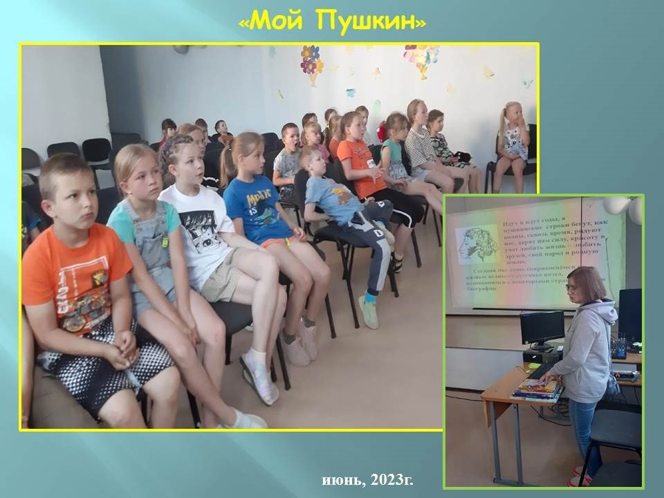 Для ребят была представлена презентация о жизни и творчестве великого русского поэта. А затем дети совершили увлекательное путешествие по сказкам Александра Сергеевича Пушкина, отвечая на вопросы литературной викторины "Мой Пушкин", в которой проявили эрудицию и смекалку.