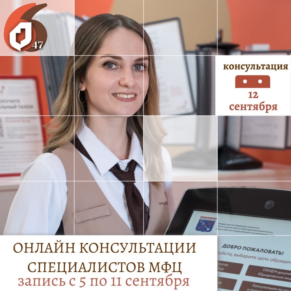 12 сентября, с 11.00 до 13.00, пройдут онлайн-консультации специалистов МФЦ. Приглашаем всех!