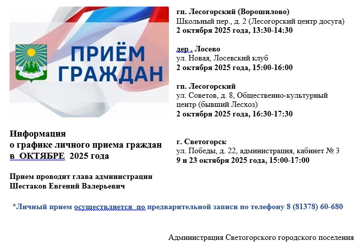 Информация о графике личного приема граждан на октябрь 2025 г.