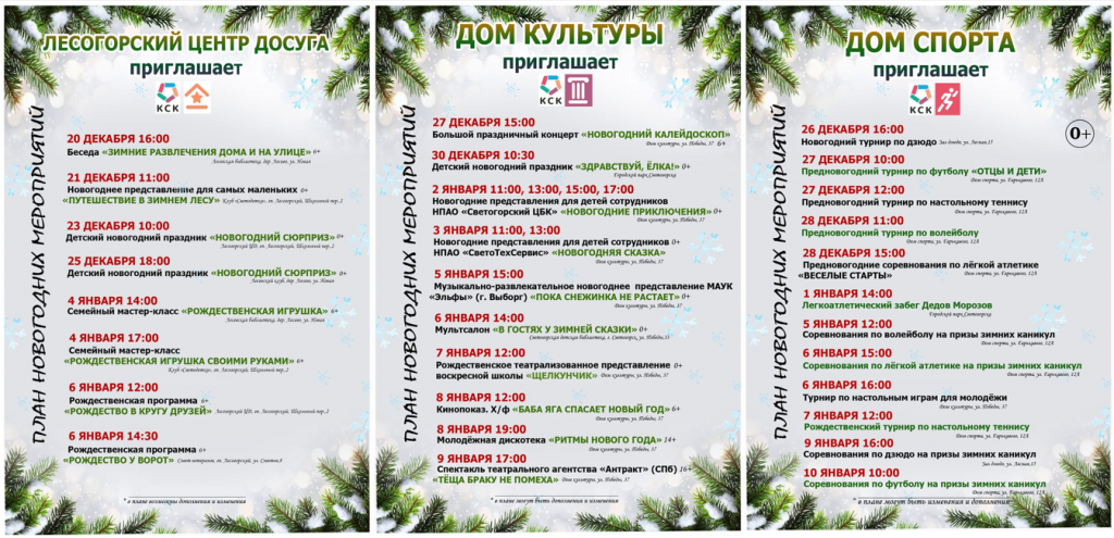 План Новогодних мероприятий